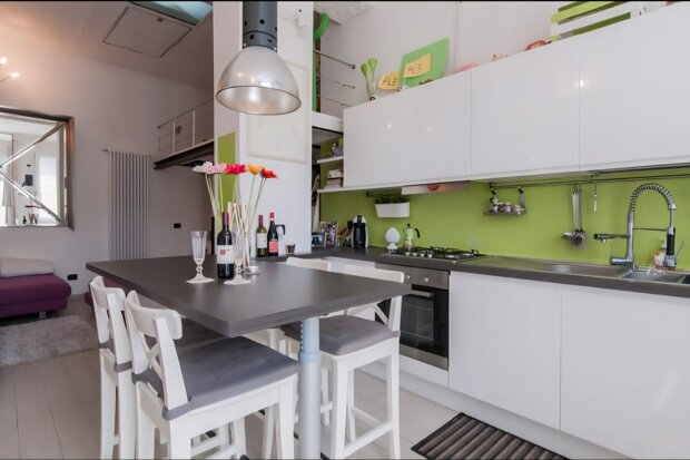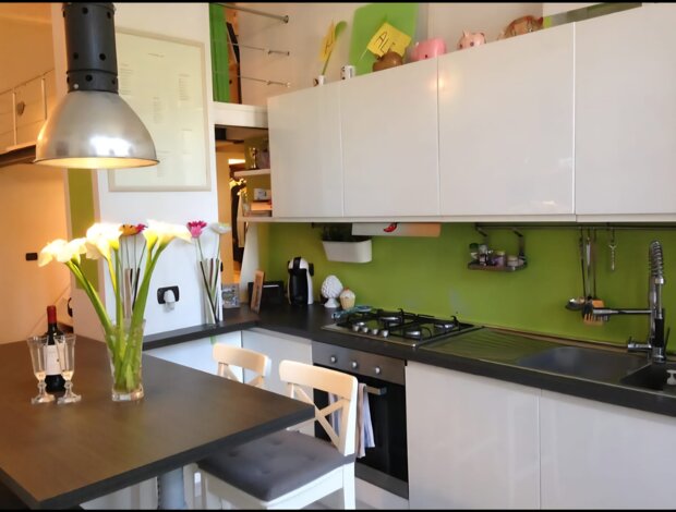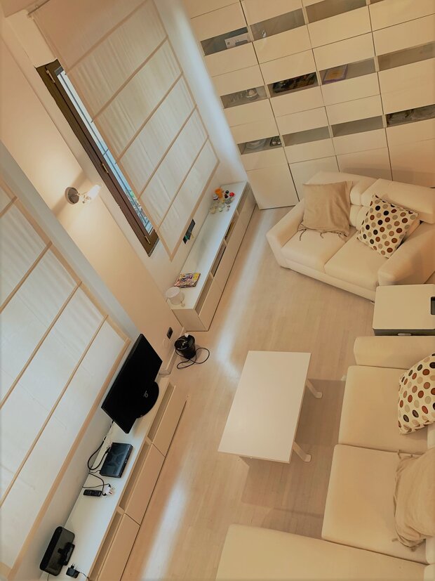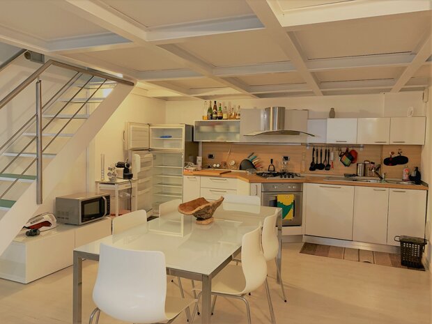 L'immobile è in ottime condizioni e viene venduto completamente arredato con mobili su misura, pensati per massimizzare ogni angolo e offrire soluzioni d'arredo intelligenti e di design.