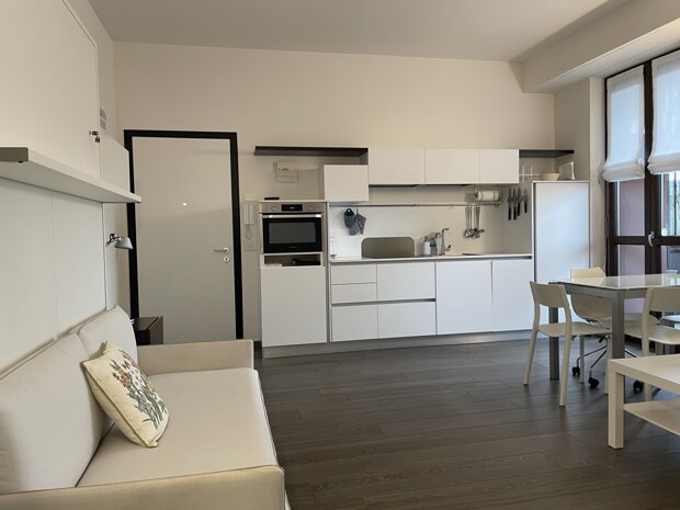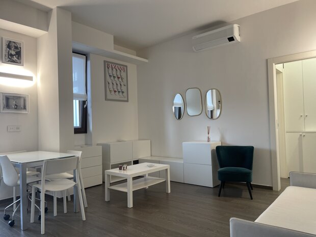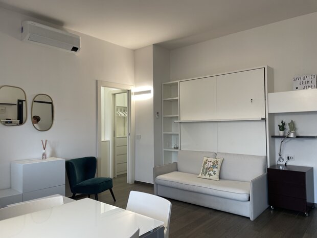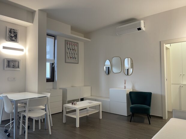 In stabile signorile con portineria full time, proponiamo in locazione elegante monolocale completamente ristrutturato, arredato e corredato di tutti gli elettrodomestici.