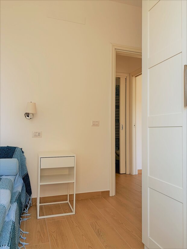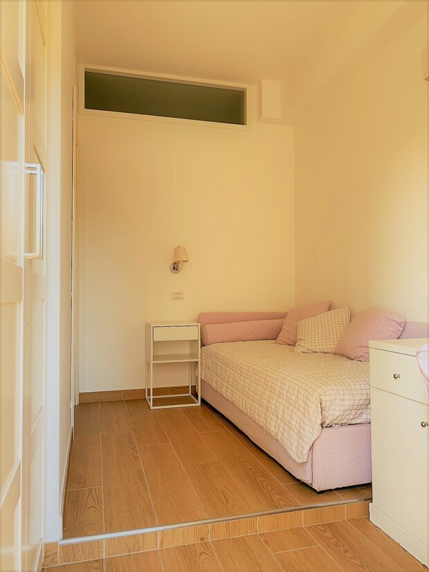 Salendo sul soppalco, un'intima camera da letto matrimoniale ti accoglie con la sua atmosfera accogliente, completata da una funzionale cabina armadio per organizzare al meglio i tuoi spazi.