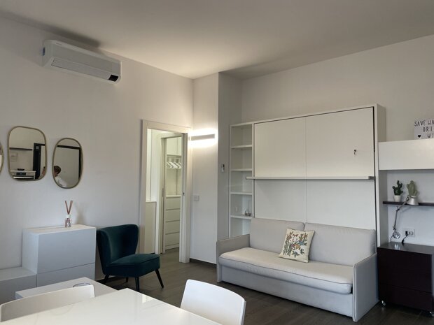 • Locali: Open space con cucina a vista, cabina armadio, bagno con disimpegno.